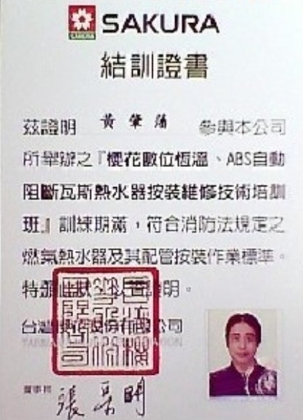 本中心的師傅皆有國家級的技術證照。